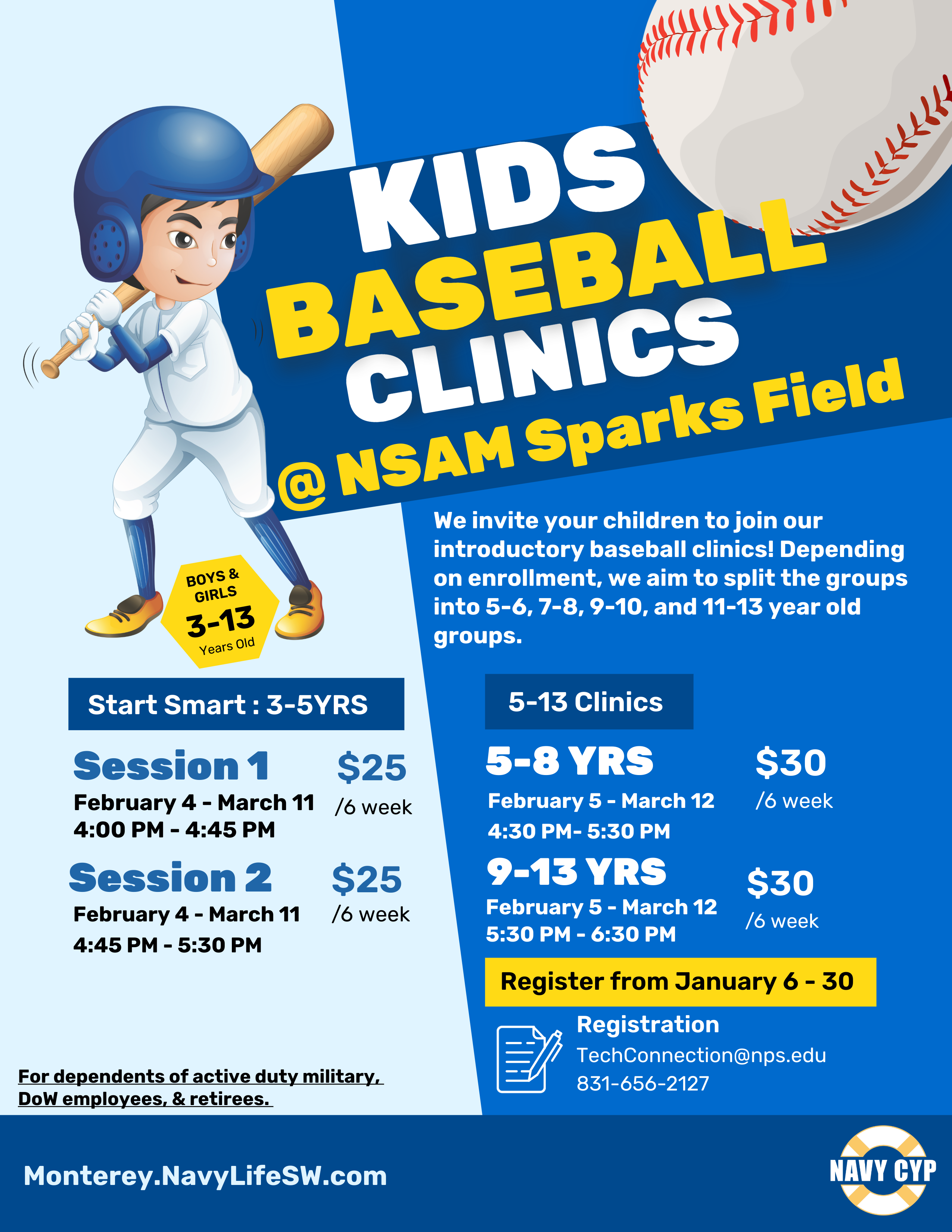 Thank you for exploring our exciting Child & Youth Sports program offerings at Naval Support Activity Monterey. We proudly provide a wide range of camps and clinics yearly in Monterey that focus on skill development and the joy of sports for all Active Duty, DoW, and retired dependents!